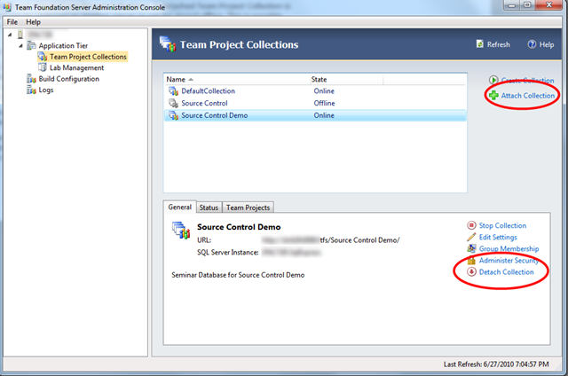 Last week I was preparing some demos for my presentation. I made a backup of my Team Project Collection after I set this collection “offline”. After a while I restored the database and everything was fine. Later on, I detached my TPC and copied it somewhere else. Then I restored my earlier (offline and thus attached) Team Project Collection.