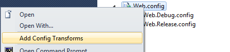 Together with my friend and colleague from Delta-N Jasper Gilhuis, I figured out a way to use this transform functionality within Visual Studio and the TFS Build Server, which gives you loads of possibilities regarding different configuration files.
