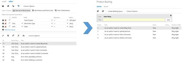 I will work out an example where we are going to change the Product Backlog of an MSF Agile project so that it shows User Stories and Bugs and show the Area Path in the output columns.