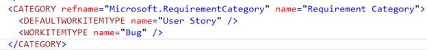 - Change the Bug Work Item so that it contains all the required fields of the Requirement category