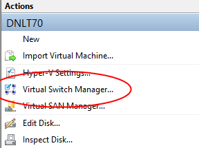 Open Hyper-V Manager on your host system and navigate to Virtual Switch Manager.