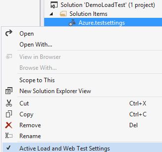After creation I made this test settings the active ones by right clicking the file and select [Active Load and Web Test Settings]