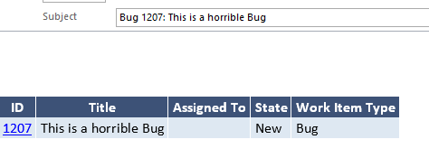 If you want to provide a little more detail, just right click the work item form and choose [Send Work Item to Microsoft Outlook]