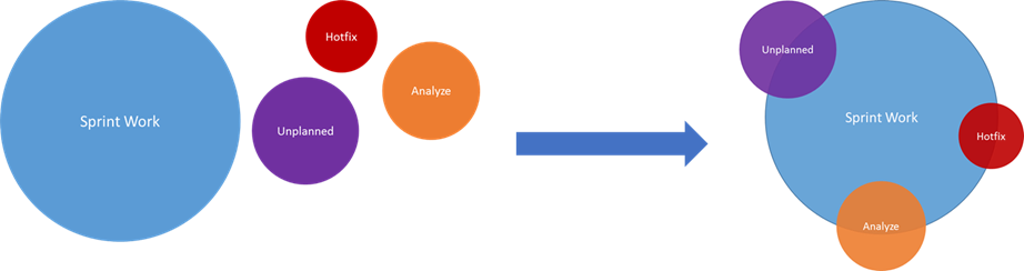 To deal with the “unplanned” work without interfering with the Scrum way of working in TFS I tend to keep things as simple as possible. Bring all of the work inside the sprint and visualize it accordingly. Let me explain with a simple picture.