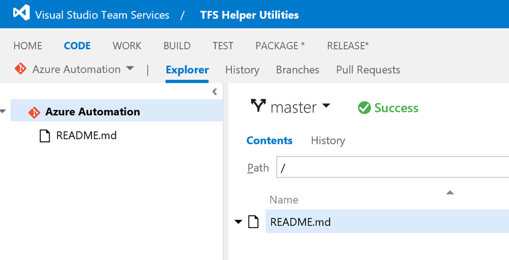So first we need to create a VSTS Team Project. I Created an Empty project for this, with a Git Repository. I added the Readme.MD file so the repo was not empty.
