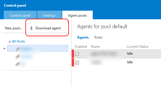 First we need to prepare some files to upload to our image. IN our case the VSTS build agent files. We download the zip from VSTS and extract it to a folder (e.g. c:\temp\docker\agent)