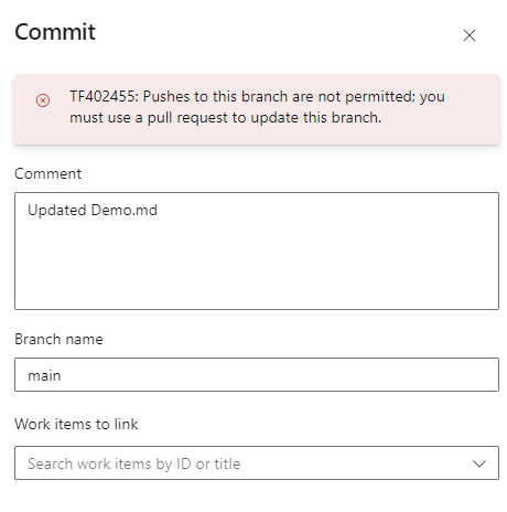 Today I was working on a Git Repo in Azure DevOps that is used for a training that I am currently building. together with my colleague Randy. One of the things we want is to set a branch policy on the main branch so that a Pull Request build is fired when we check in. The expected behavior is that nothing can be check in in to the main branch. Right? Seems trivial ? No.. Not right